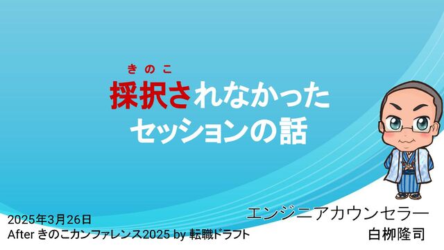採択されなかった セッションの話 白栁隆司 2025年3月26日 After きのこカンファレンス2025 by 転職ドラフト き の こ