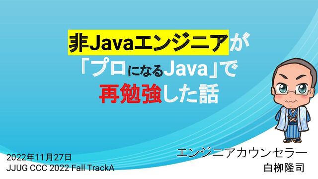 非Javaエンジニアが 「プロになるJava」で 再勉強した話 白栁隆司 2022年11月27日 JJUG CCC 2022 Fall TrackA