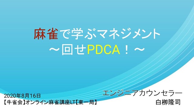 2020年8月16日【牛雀会】オンライン麻雀講座LT【東一局】 で登壇したときの資料です。