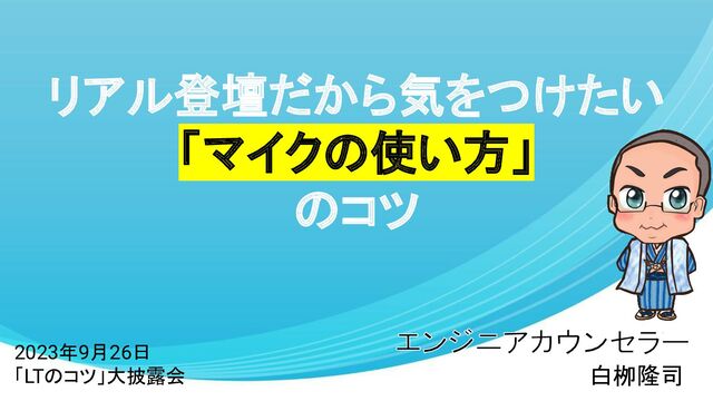 2023年9月26日 (水)「LTのコツ」大披露会 で登壇したときの資料です。 https://engineers.connpass.com/event/294400/