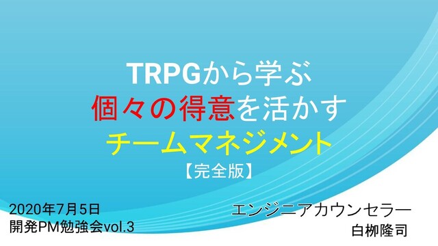 2020年7月5日 【開発PM勉強会vol.3 オンライン】漫画・アニメで学んだチームビルディングLT&グループワーク で登壇したときの資料の完全版です