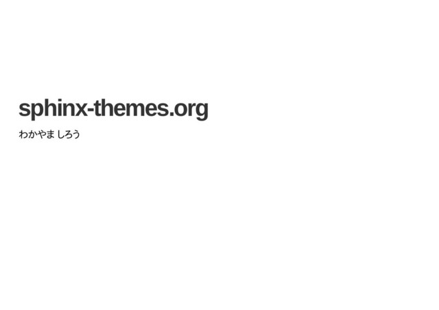 テーマ Sphinxの魅力の一つは豊富なテーマです。 標準以外に多種多様なテーマが公開されており、簡単に使えます。 % pip install sphinxjp.themes.gopher あとは conf.py の