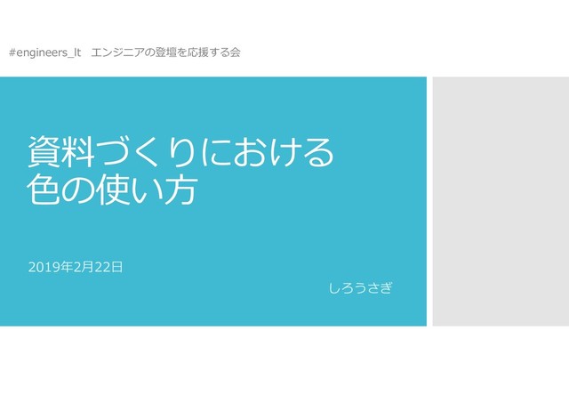 資料づくりにおける 色の使い方 2019年2月22日 しろうさぎ #engineers_lt エンジニアの登壇を応援する会