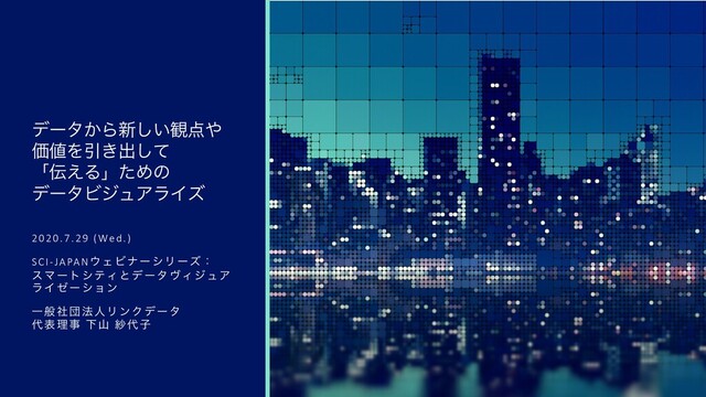 2020年7月29日(水)に開催された「SCI-JAPANウェビナーシリーズ:スマートシティとデータヴィジュアライゼーション」( https://sci-jwebinar20200729.peatix.com/ )における発表資料です。