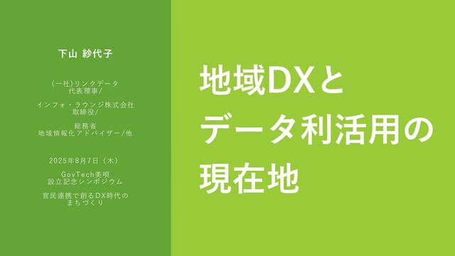D X Expert Offic er Exec utive Adviser fo r CIO Dir ector / Data Stew ard Fellow Vi ce President / CB O Repr esentative Dir ector 3 Sayoko Shimoyama, LinkData City Prefecture Sayoko Shimoyama Enterprise Civic Tech Public Sector Private Sector 2025-08-07