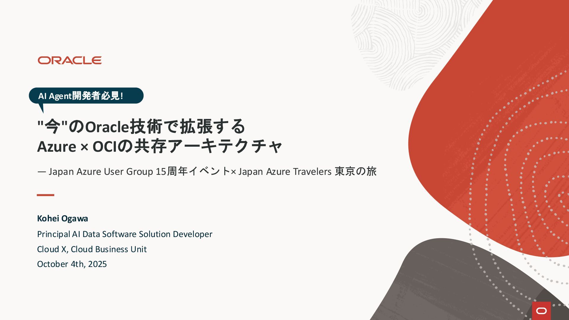 JAZUG 15周年記念 × JAT「AI Agent開発者必見:"今"のOracle技術で拡張するAzure × OCIの共存アーキテクチャ」