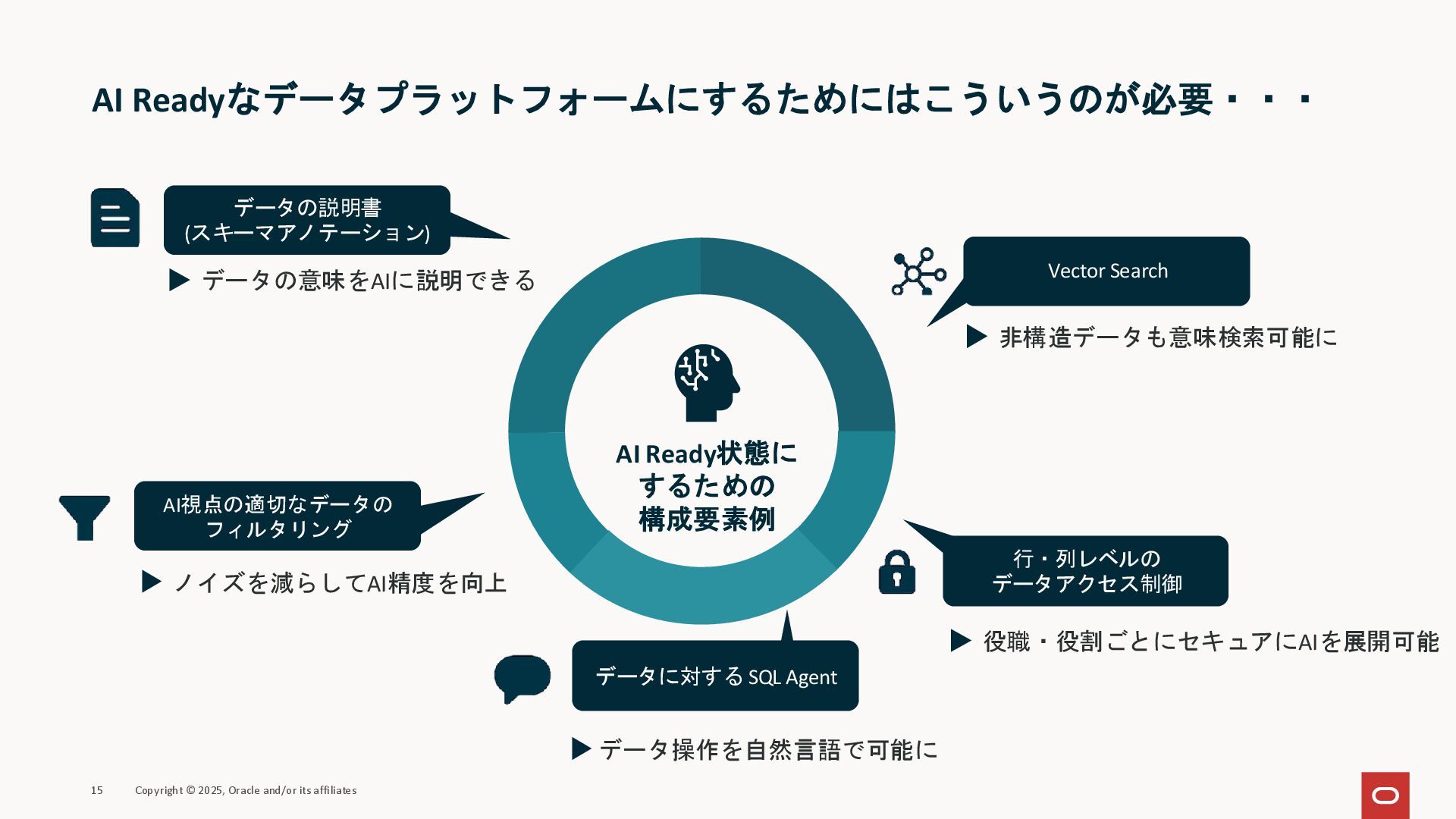 13. AI Readyなデータプラットフォームにするためにはこういうのが必要・・・ 15 Copyright © 2025, Oracle and/or its affiliates