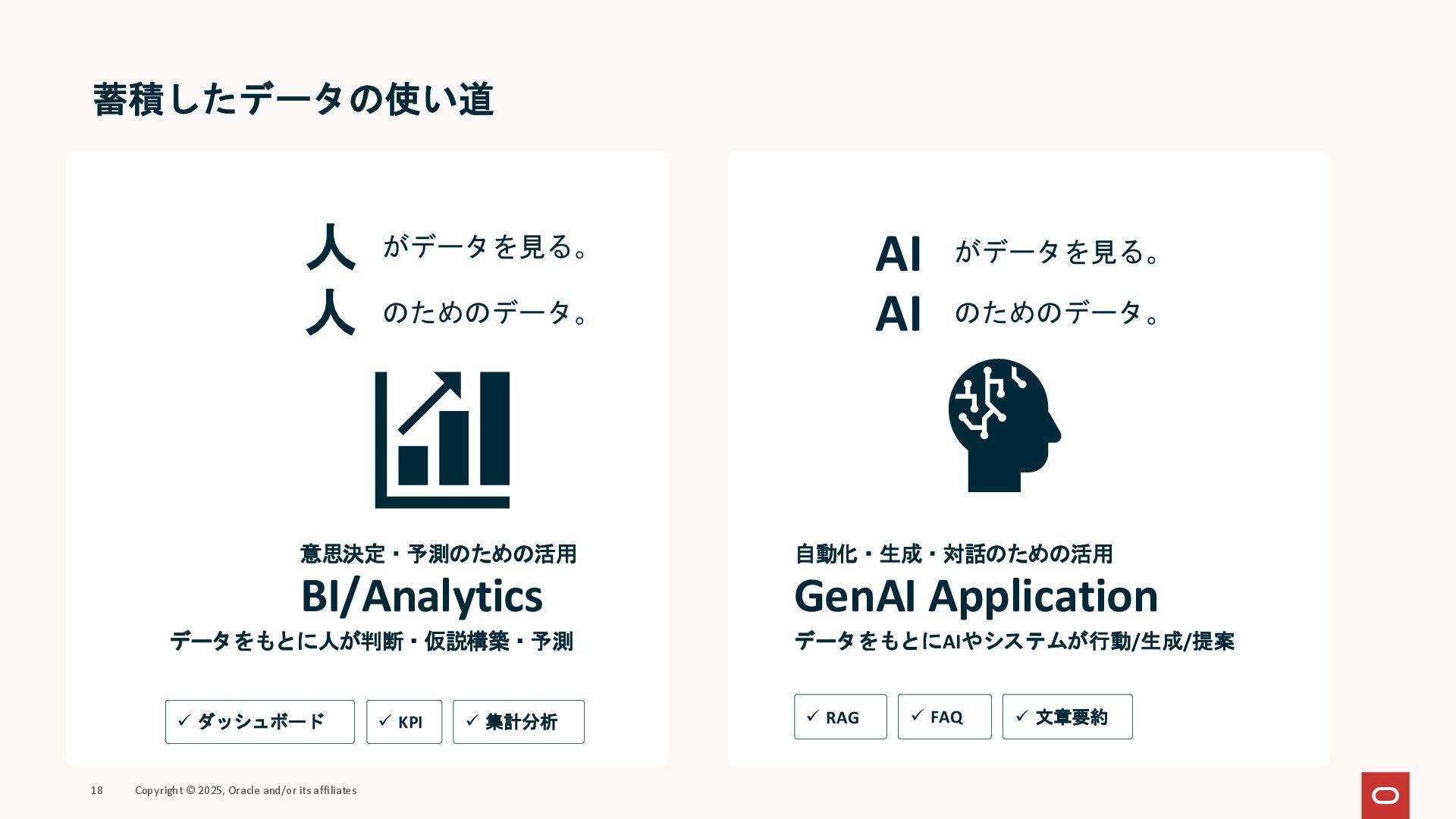 14. 蓄積したデータの使い道 18 Copyright © 2025, Oracle and/or its affiliates GenAI