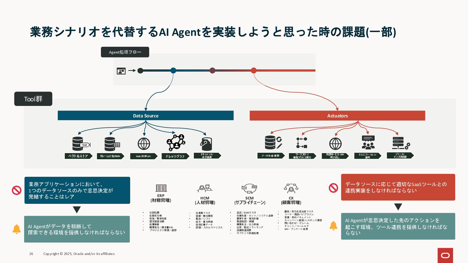 21. 業務シナリオを代替するAI Agentを実装しようと思った時の課題(一部) 26 Copyright © 2025, Oracle and/or its affiliates