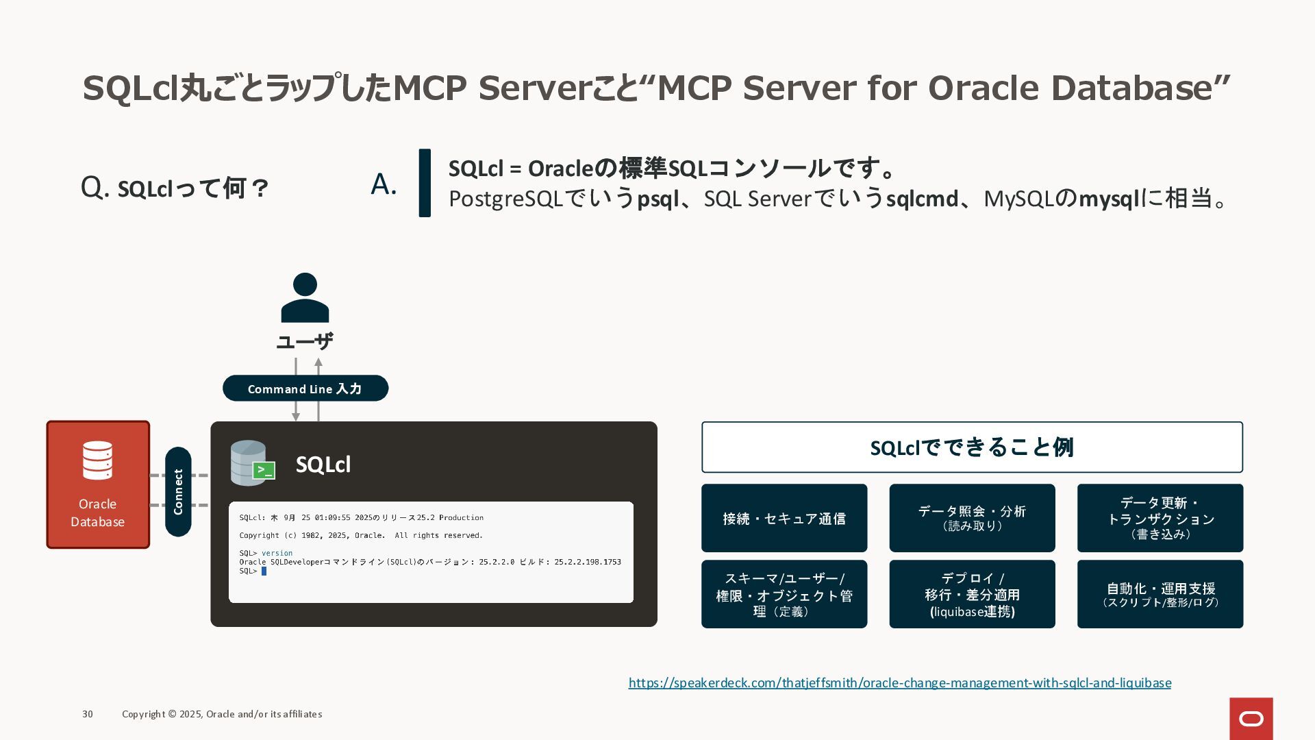 25. SQLcl丸ごとラップしたMCP Serverこと“MCP Server for Oracle Database” 30 Copyright © 2025,