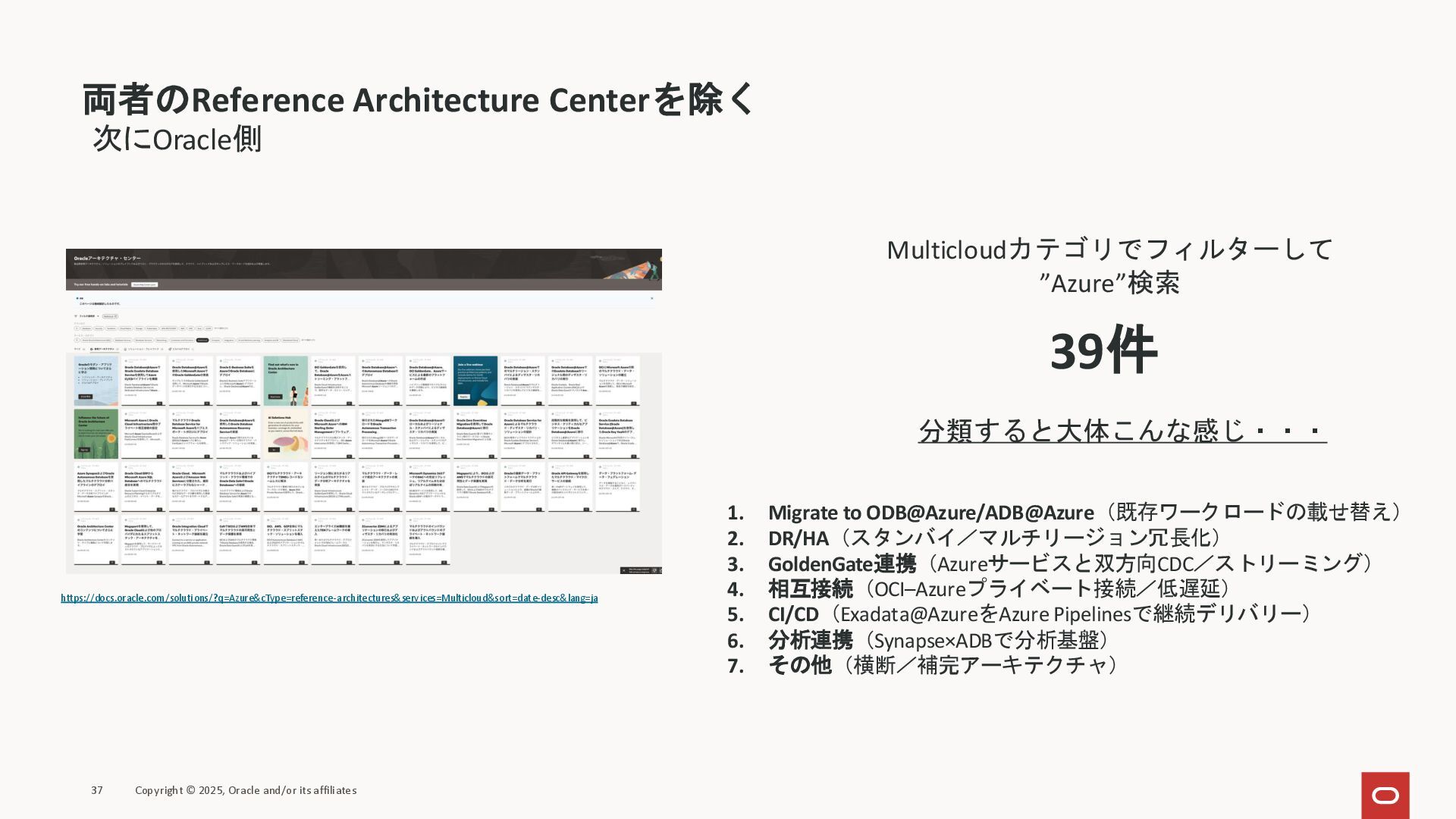 30. 両者のReference Architecture Centerを除く 37 Copyright © 2025, Oracle and/or its