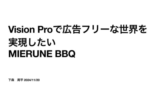 Լɹपฏ 2024/11/20 Vision ProͰࠂϑϦʔͳੈքΛ ࣮ݱ͍ͨ͠ MIERUNE BBQ