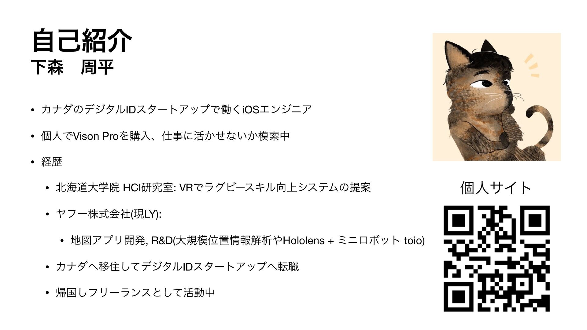 ࣗݾհ Լɹपฏ • ΧφμͷσδλϧIDελʔτΞοϓͰಇ͘iOSΤϯδχΞ • ݸਓͰVison ProΛߪೖɺࣄʹ׆͔ͤͳ͍͔ࡧத • ܦྺ •