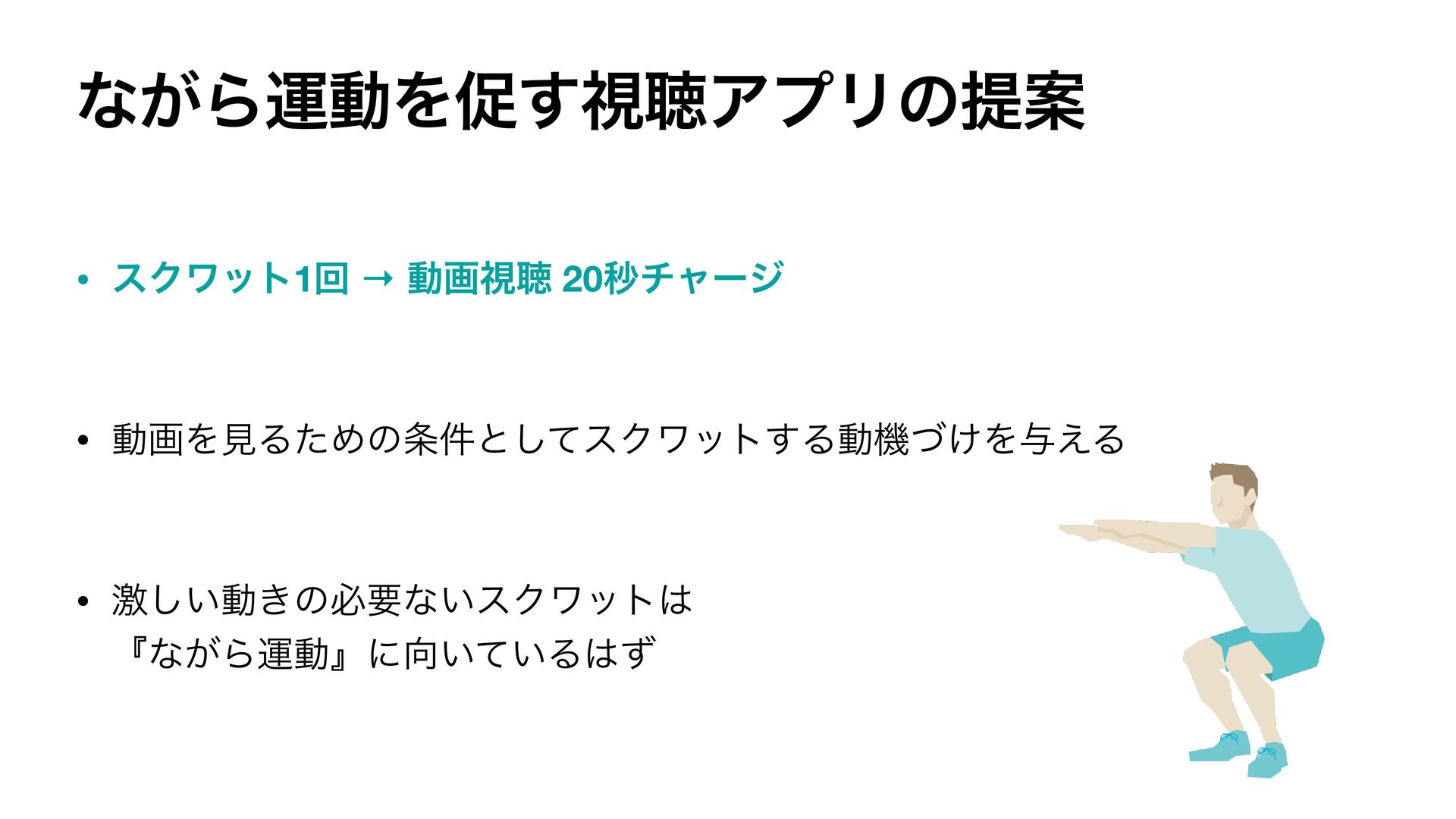 ͳ͕ΒӡಈΛଅ͢ࢹௌΞϓϦͷఏҊ • εΫϫοτ1ճ → ಈըࢹௌ 20ඵνϟʔδ • ಈըΛݟΔͨΊͷ݅ͱͯ͠εΫϫοτ͢Δಈػ͚ͮΛ༩͑Δ • ܹ͍͠ಈ͖ͷඞཁͳ͍εΫϫοτ