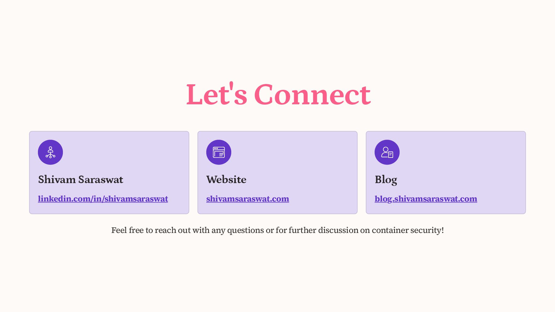 17. Let's Connect Shivam Saraswat linkedin.com/in/shivamsaraswat Website shivamsaraswat.com Blog blog.shivamsaraswat.com Feel