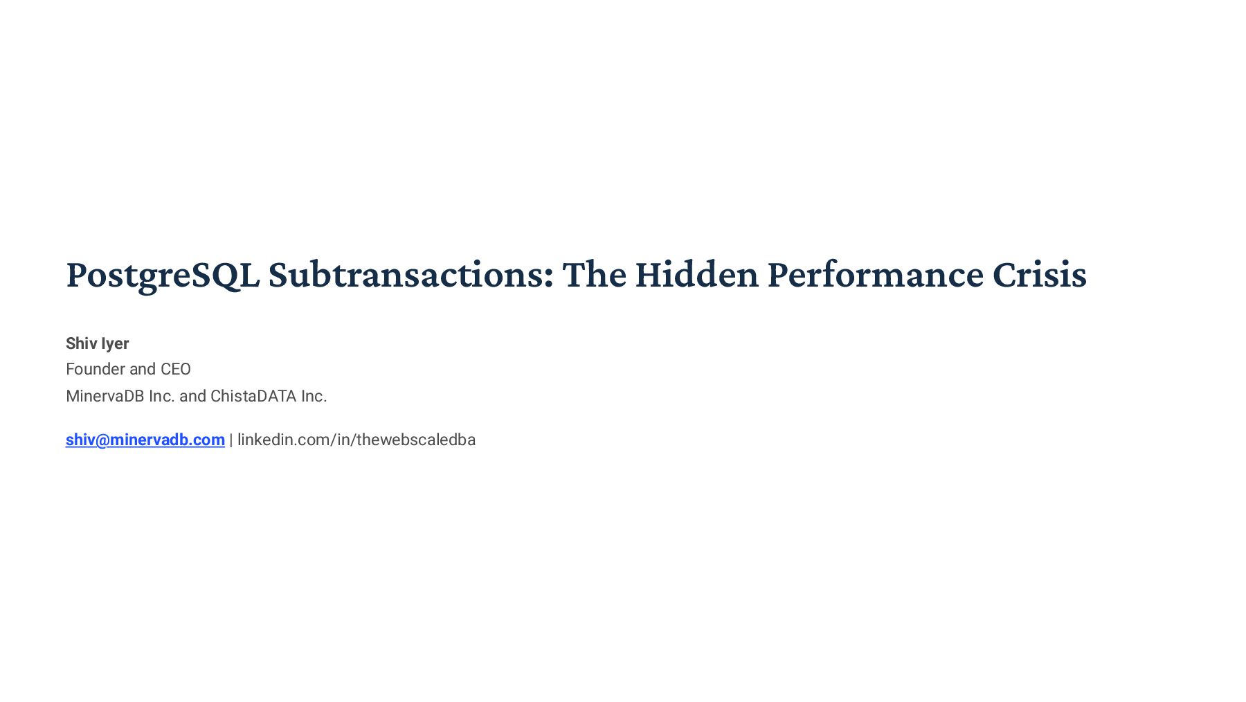 1. PostgreSQL Subtransactions: The Hidden Performance Crisis Shiv Iyer Founder and
