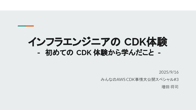 インフラエンジニアの CDK体験 - 初めての CDK 体験から学んだこと - 2025/9/16 みんなのAWS CDK事情大公開スペシャル#3