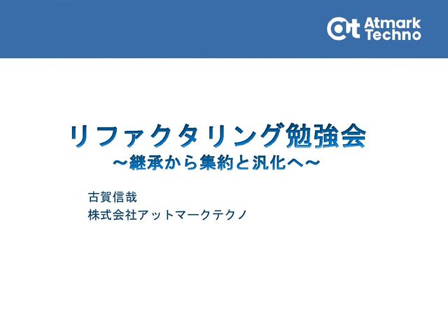 リファクタリング勉強会 ~継承から集約と汎化へ~ 古賀信哉 株式会社アットマークテクノ