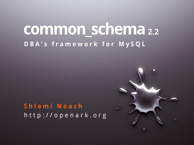 This session introduces the common_schema project: a self contained schema which leverages the DBA and the developer capabilities through a set of sophisticated views, routines and a specialized scripting language (QueryScript), simplifying MySQL server administration and analysis.