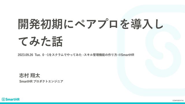 CONFIDENTIAL ։ൃॳظʹϖΞϓϩΛಋೖ͠ ͯΈͨ 5VFˠΛεΫϥϜͰͬͯΈͨεΩϧཧػೳͷ࡞Γํ!4NBSU)3 ࢤଜᠳଠ 4NBSU)3ϓϩμΫτΤϯδχΞ