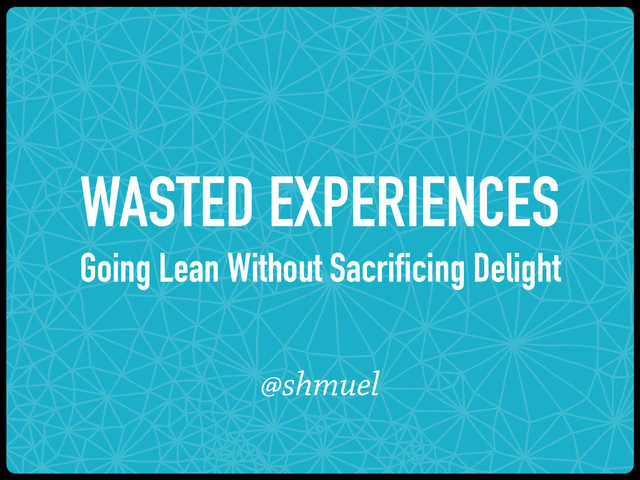 Shorter iterations do not automatically lead to better outcomes. Lean UX can leave in it's wake a wasteland of broken experiences littered with tumbleweeds never to be swept up. In this presentation Samuel Bowles will tell stories, and provide practical tools from his experience applying Lean principles to reduce waste while preserving delight.