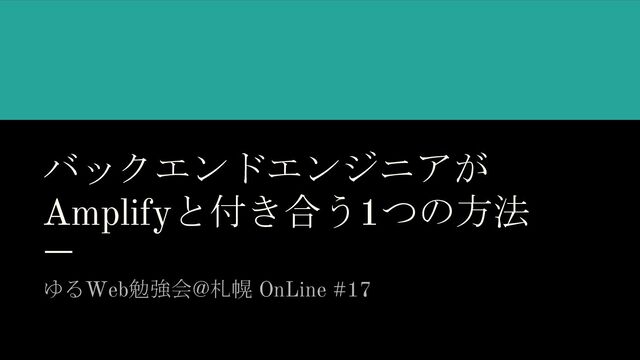 バックエンドエンジニアが Amplifyと付き合う1つの方法 ゆるWeb勉強会@札幌 OnLine #17