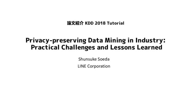 KDD2018 チュートリアルの紹介(Privacy Preserving Data Mining)