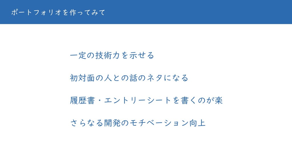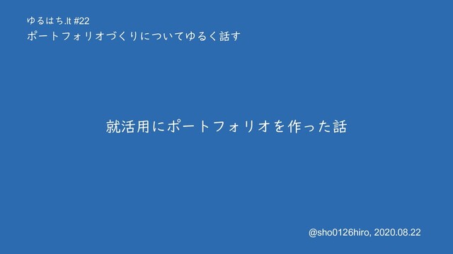 2020/08/26 「第22回ゆるはち.it ポートフォリオ作りについてゆるく話す」での登壇資料です。 ポートフォリオのつくりかたを実際の流れに沿って説明し、どのようなメリットがあったかについて話しました。