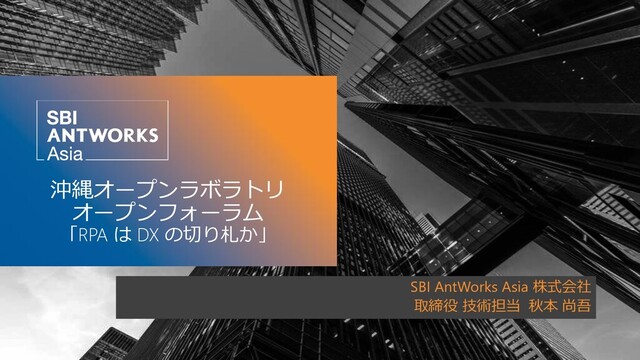2021年3月19日にオンラインで開催されました沖縄オープンラボラトリ オープンフォーラム「RPA はDX の切り札か」でご紹介した RPA と DX に関するセッションの資料です。 https://ool.connpass.com/event/205385/