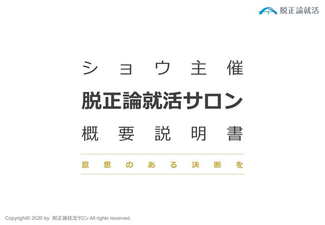 Copyright© 2020 by 脱正論就活サロン All rights reserved. 脱正論就活の⽬指すゴール 意思のある決断を 正解を探すのではなく