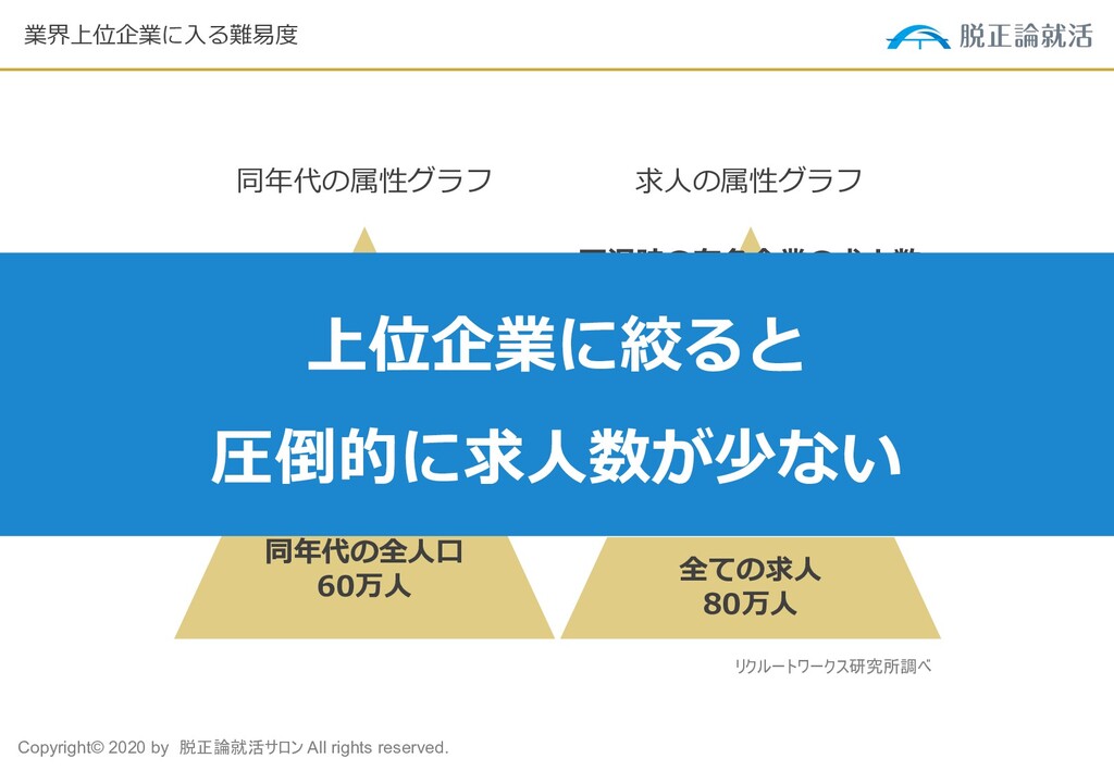 Copyright© 2020 by 脱正論就活サロン All rights reserved. 業界上位企業に⼊る難易度 ただ業界上企業に ⼊社するのは