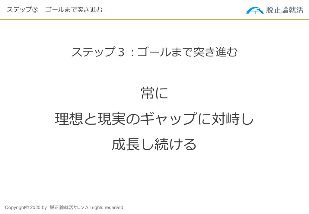 Copyright© 2020 by 脱正論就活サロン All rights reserved. ステップ③ - ゴールまで突き進む-