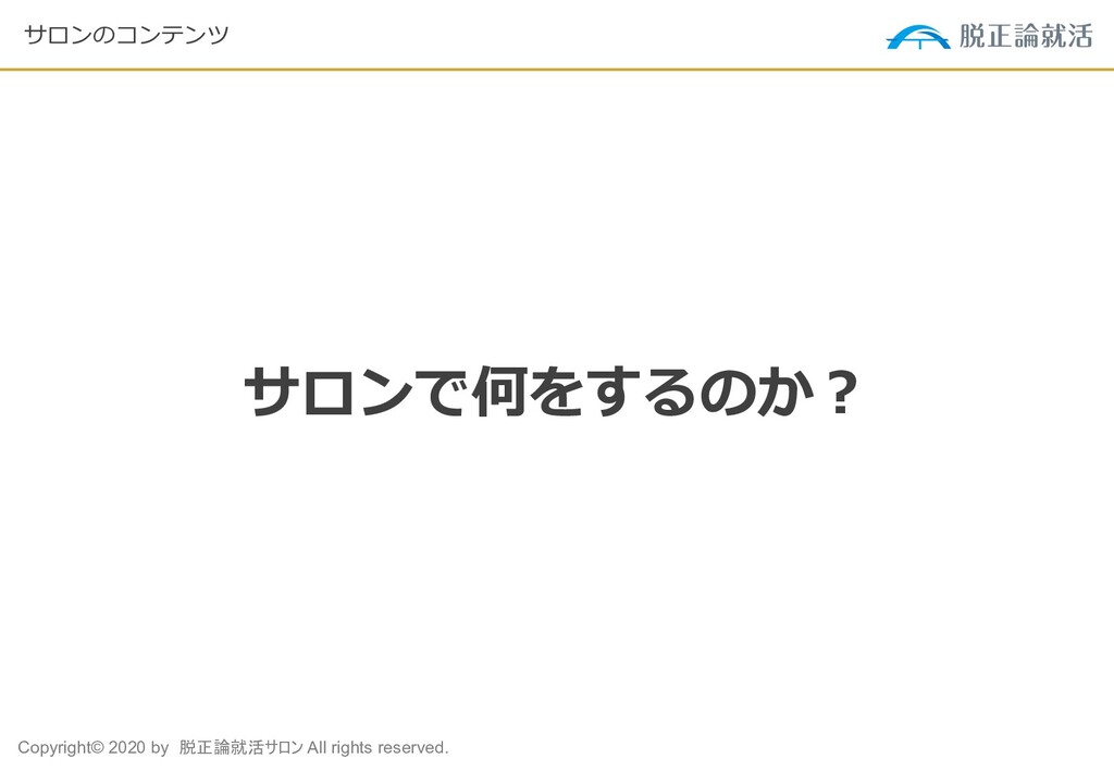 Copyright© 2020 by 脱正論就活サロン All rights reserved. サロンのコンテンツ サロンで何をするのか︖