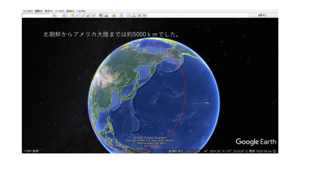 北朝鮮からアメリカ大陸までは約5000kmでした。