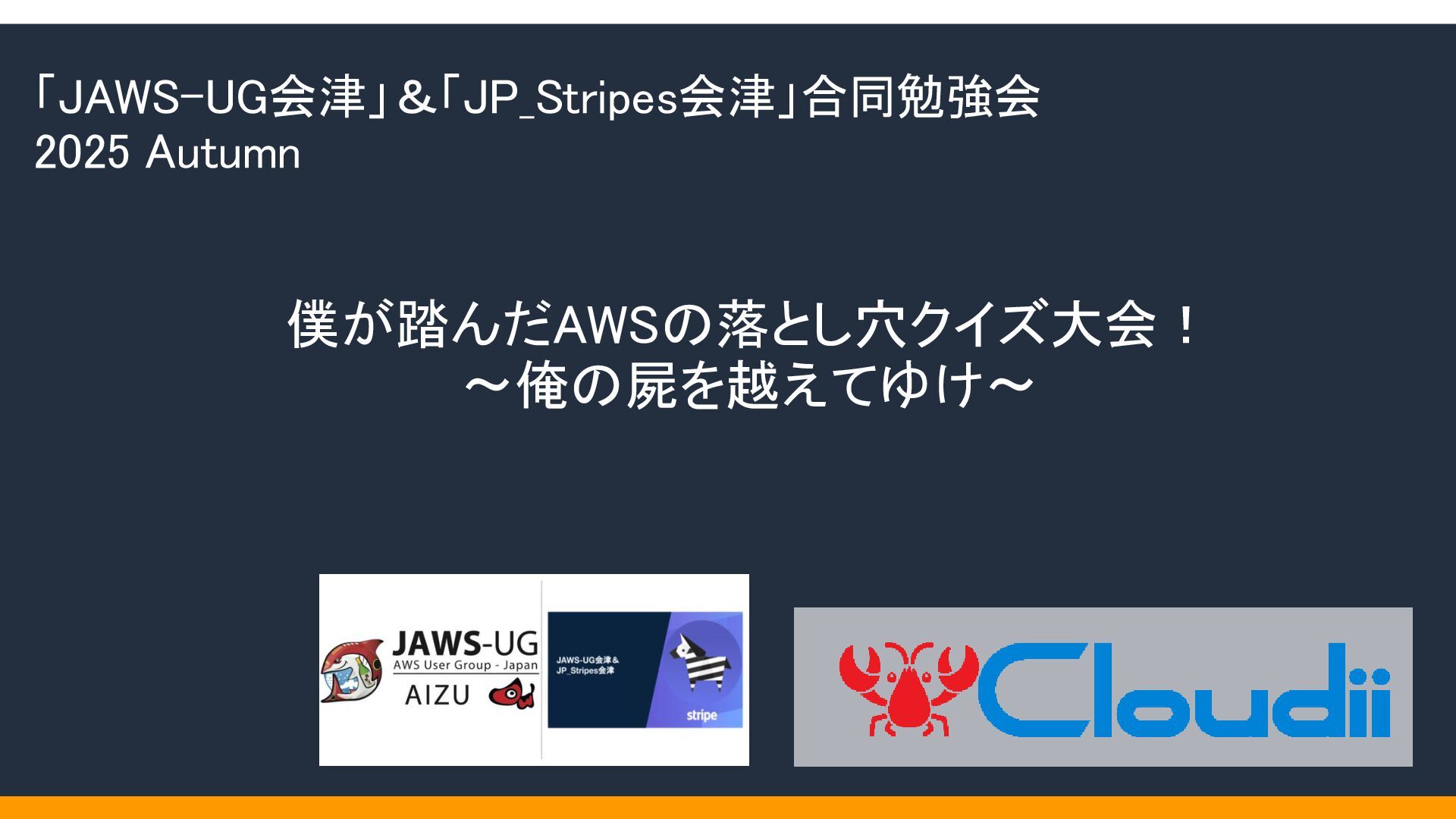 「JAWS-UG会津」&「JP_Stripes会津」合同勉強会 2025 Autumn 僕が踏んだAWSの落とし穴クイズ大会! 〜俺の屍を越えてゆけ〜