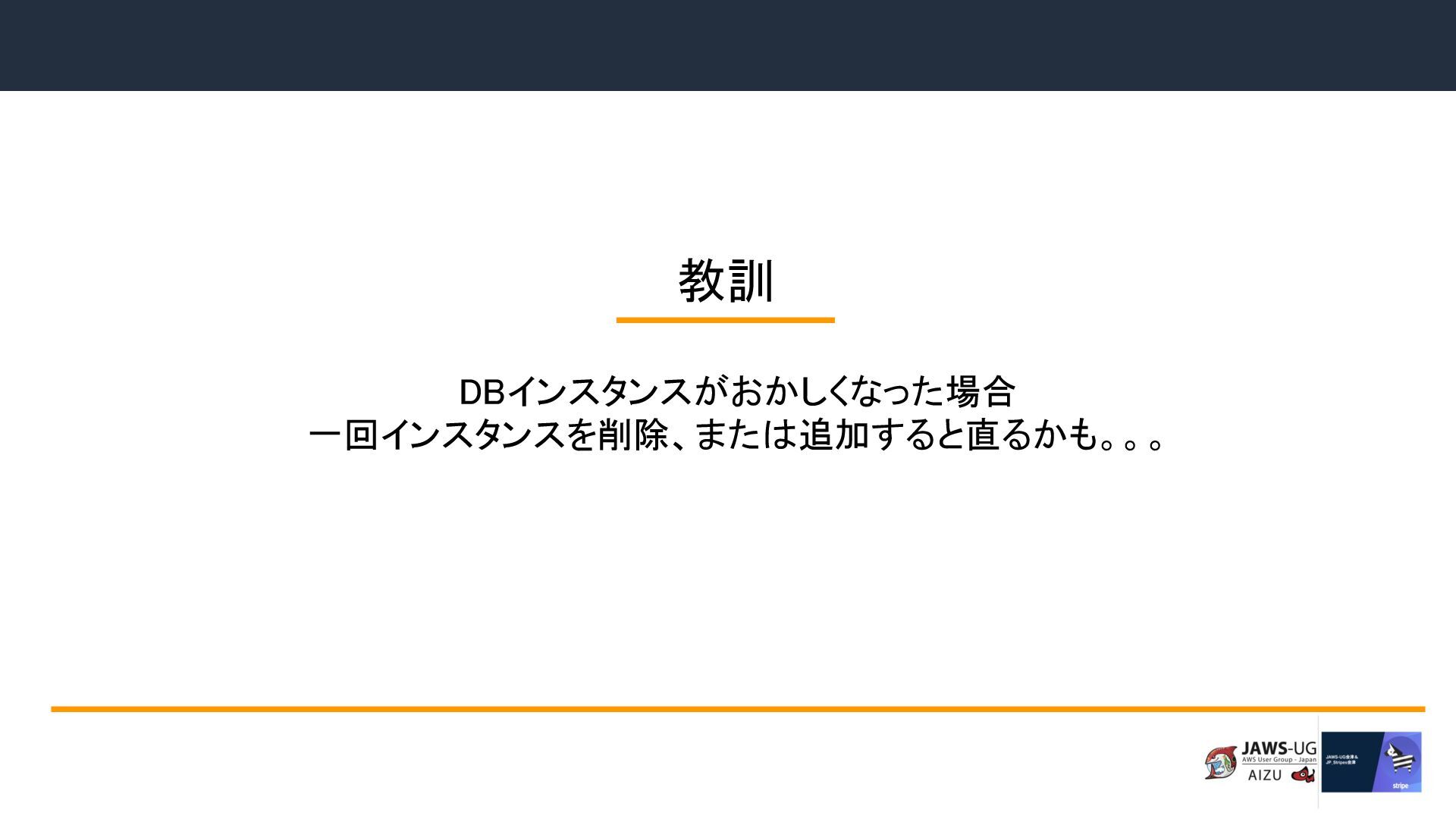 5 教訓 DBインスタンスがおかしくなった場合 一回インスタンスを削除、または追加すると直るかも。。。