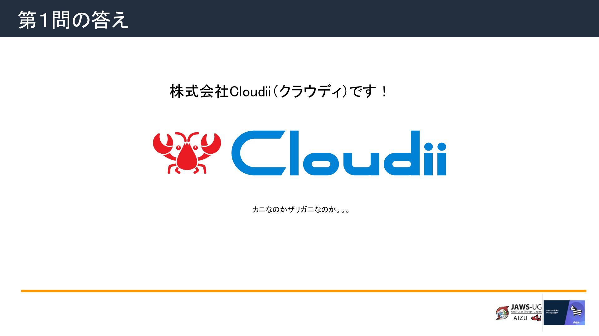 5 第1問の答え 株式会社Cloudii(クラウディ)です! カニなのかザリガニなのか。。。