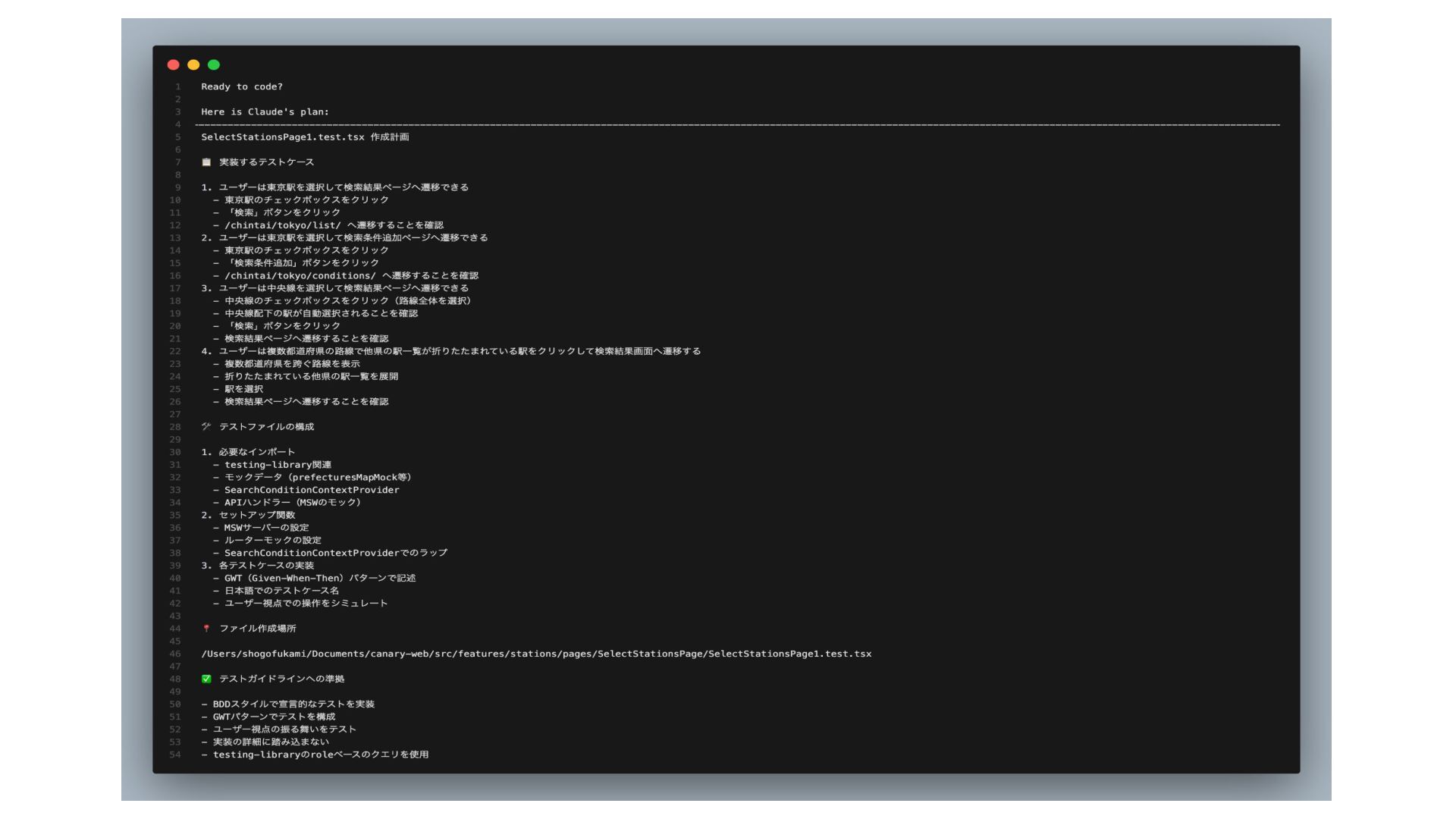 Plan modeで調査した内容を サブエージェントに投げてテストを実装