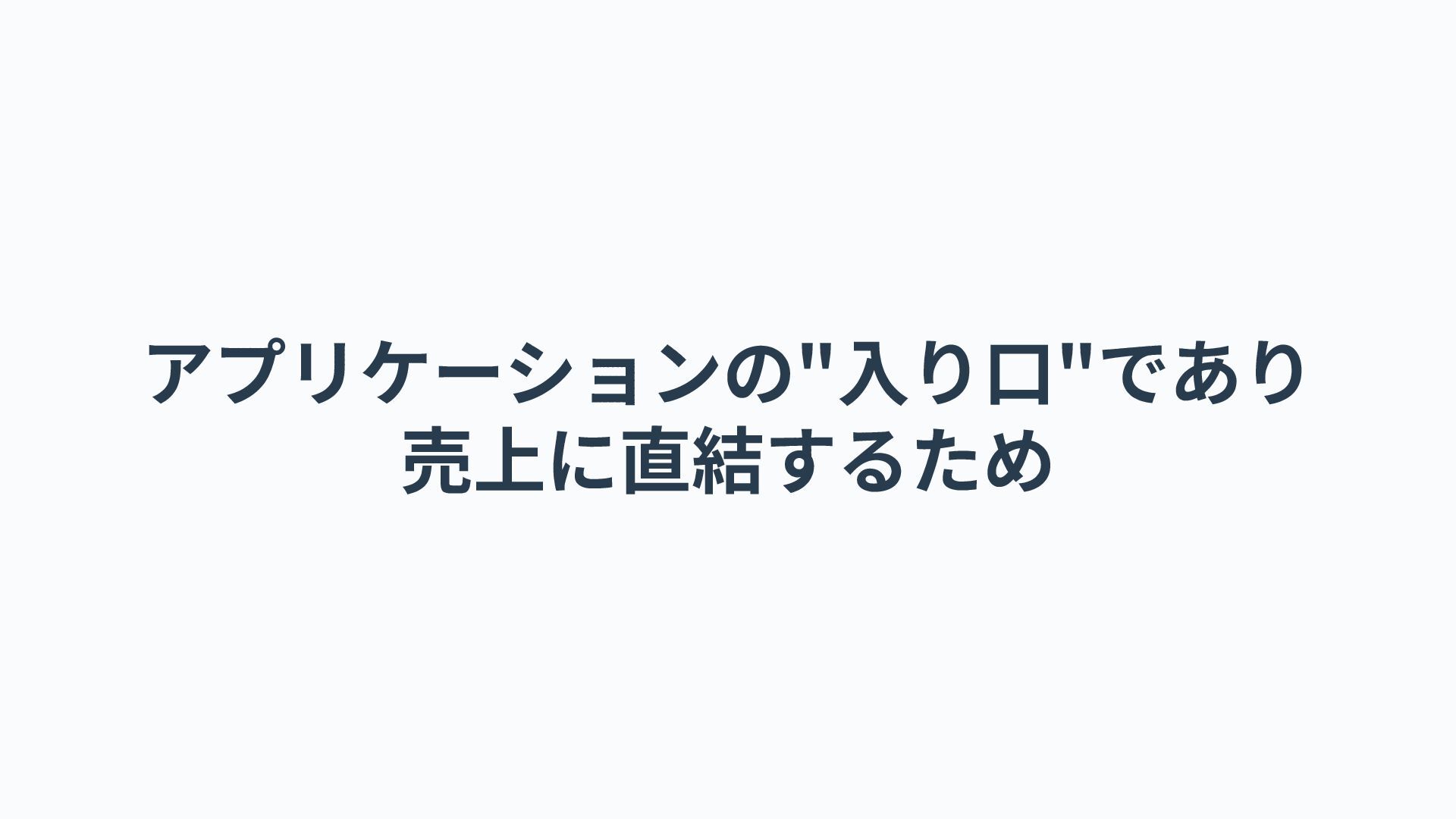 アプリケーションの"⼊り⼝"であり 売上に直結するため