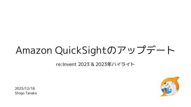 Amazon QuickSightのアップデート re:Invent 2023 & 2023年ハイライト 2023/12/18 Shogo Tanaka