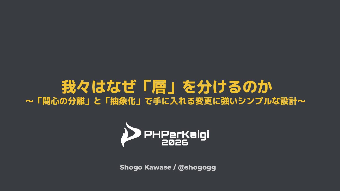 我々はなぜ「層」を分けるのか〜「関心の分離」と「抽象化」で手に入れる変更に強いシンプルな設計〜 #phperkaigi / PHPerKaigi 2026