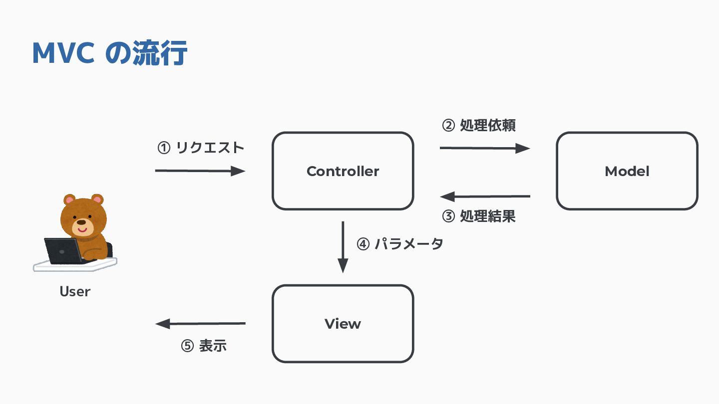 3. MVC の流行 ① リクエスト Controller View Model ② 処理依頼 ③