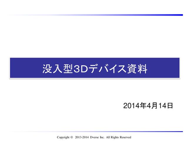 Copyright © 2013-2014 Dverse Inc. All Rights Reserved 2014年4月14日 没入型3Dデバイス資料