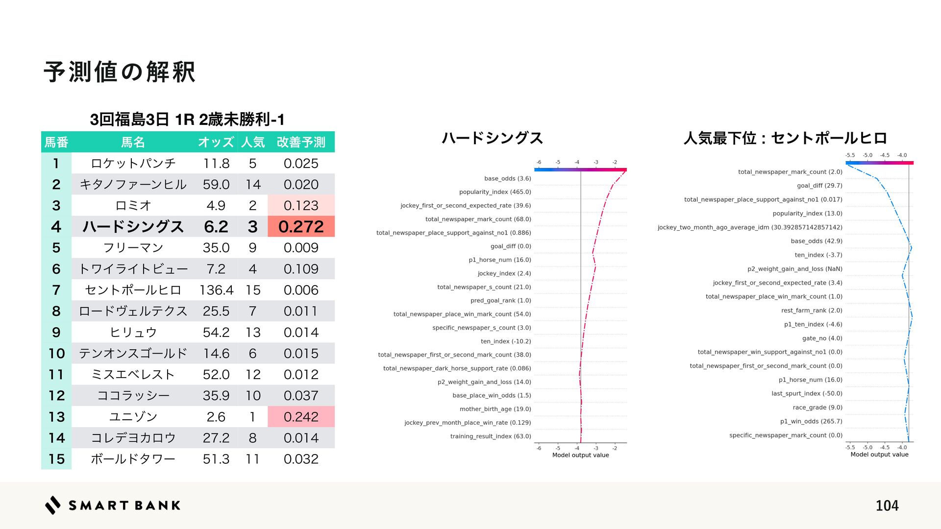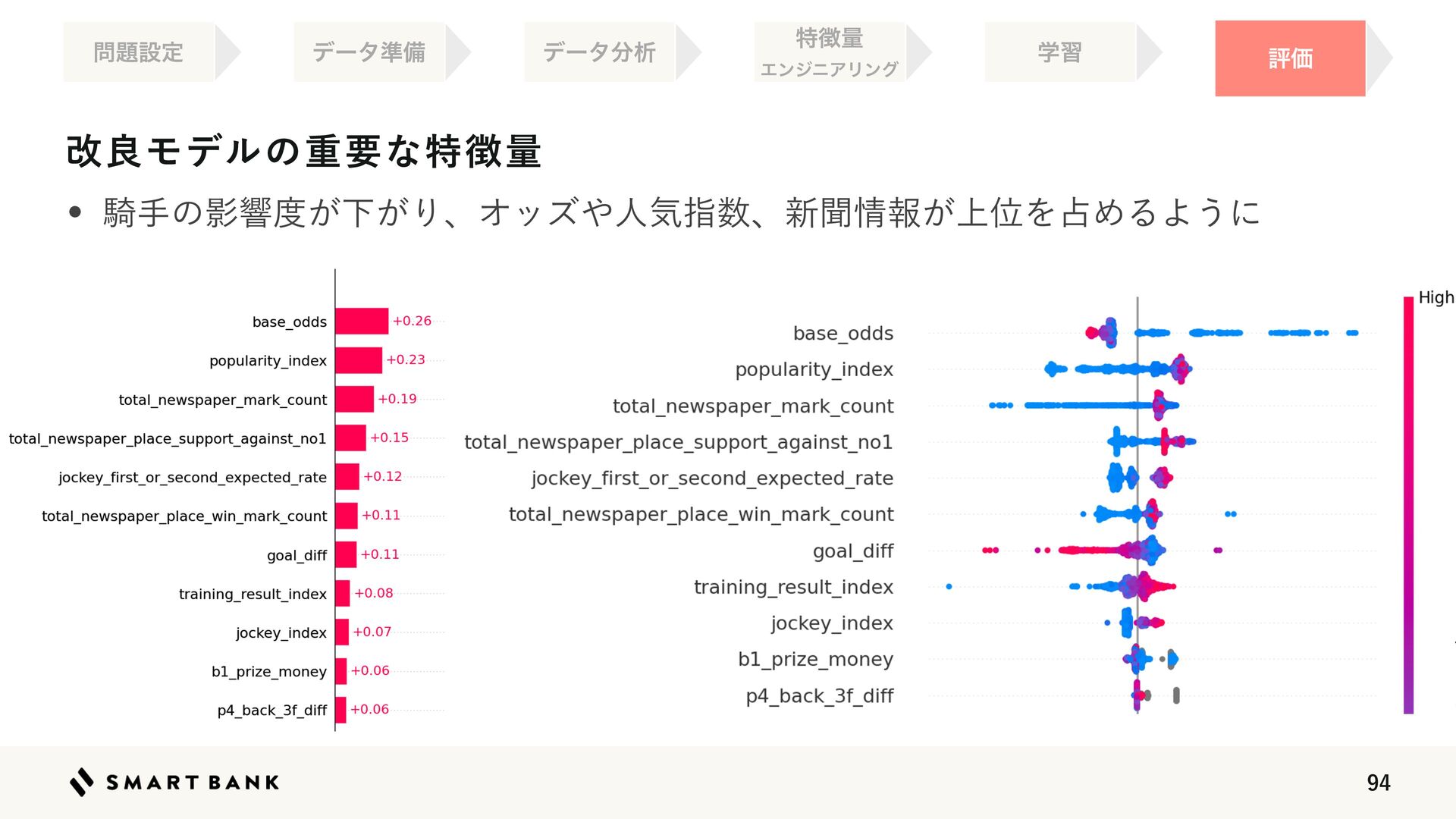 31.  ϕʔεϞσϧͷॏཁͳಛ௃ྔΛ֬ೝ͢Δ ධՁ σʔλ४උ σʔλ෼ੳ ಛ௃ྔ ΤϯδχΞϦϯά ֶश w 4)"1ͱ͍͏༧ଌʹ֤ೖྗಛ௃ྔ͕ͲΕ͚ͩӨڹΛ༩͔͑ͨʢد༩౓ʣΛࢉग़͢Δํ