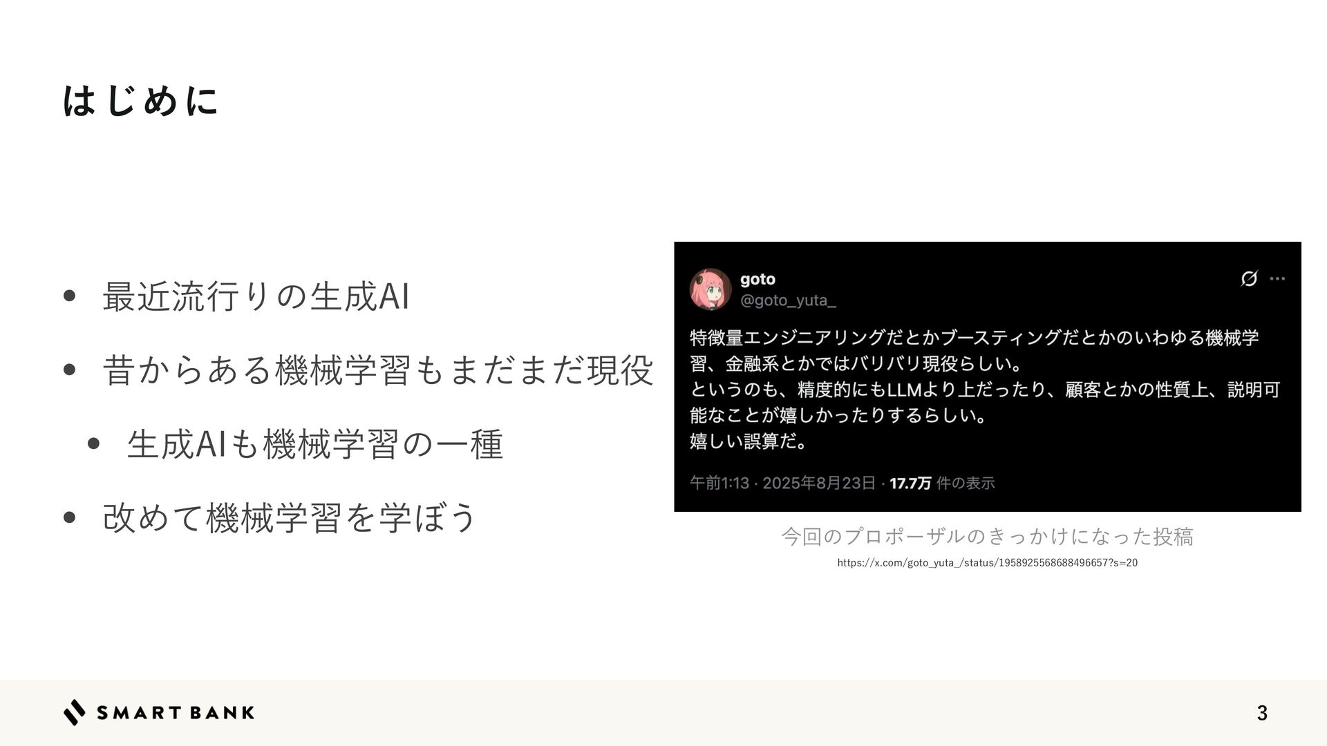 2.  ͸͡Ίʹ w ࠷ۙྲྀߦΓͷੜ੒"* w ੲ͔Β͋Δػցֶश΋·ͩ·ͩݱ໾ w ੜ੒"*΋ػցֶशͷҰछ w վΊͯػցֶशΛֶ΅͏