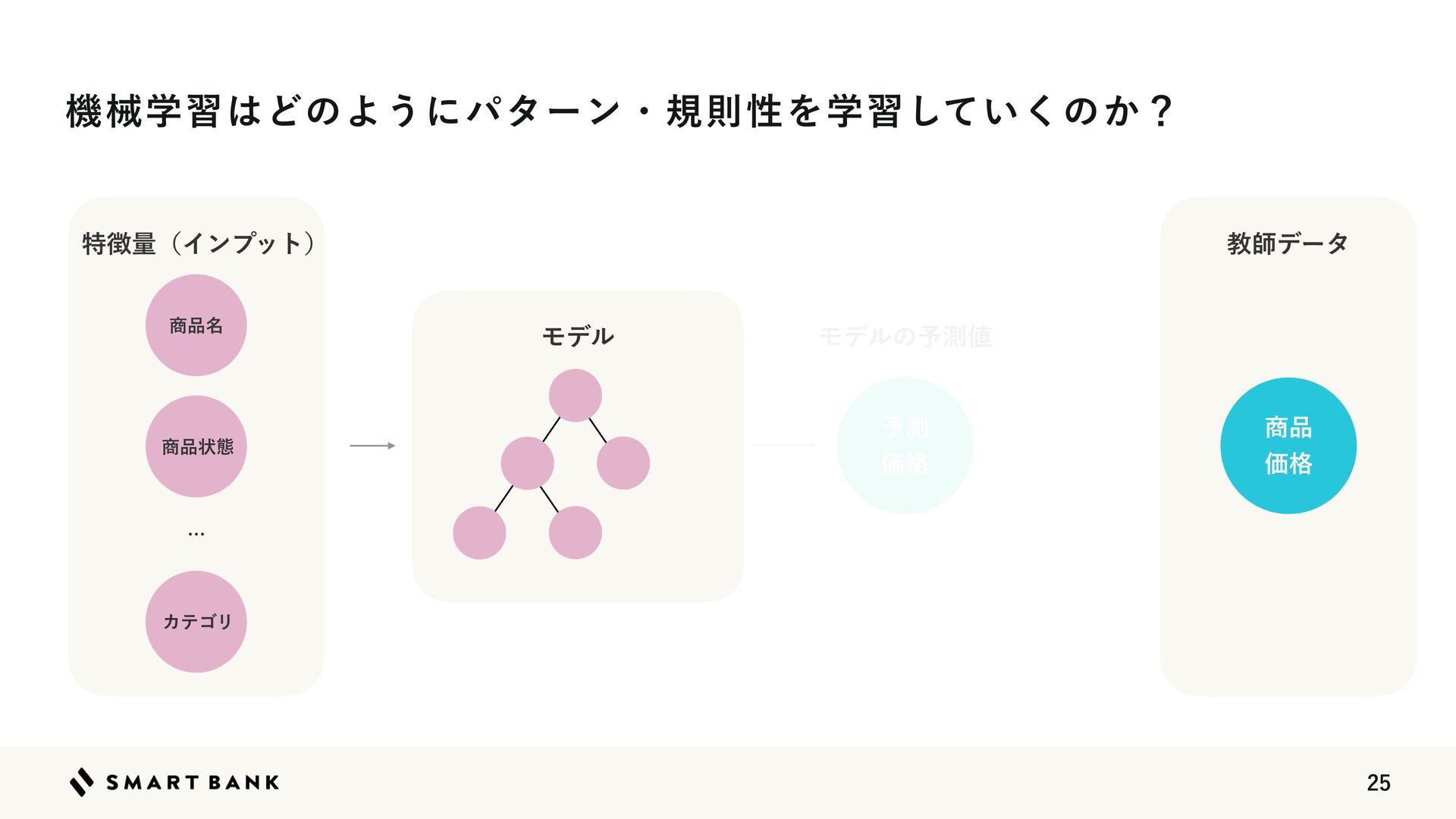 Ձ֨ Ϟσϧ Ϟσϧͷ༧ଌ஋ ֶशର৅ͷσʔλಛ௃ྔͱڭࢣσʔλؒͷ ύλʔϯɾنଇੑΛֶश͢Δ ঎඼ঢ়ଶ
