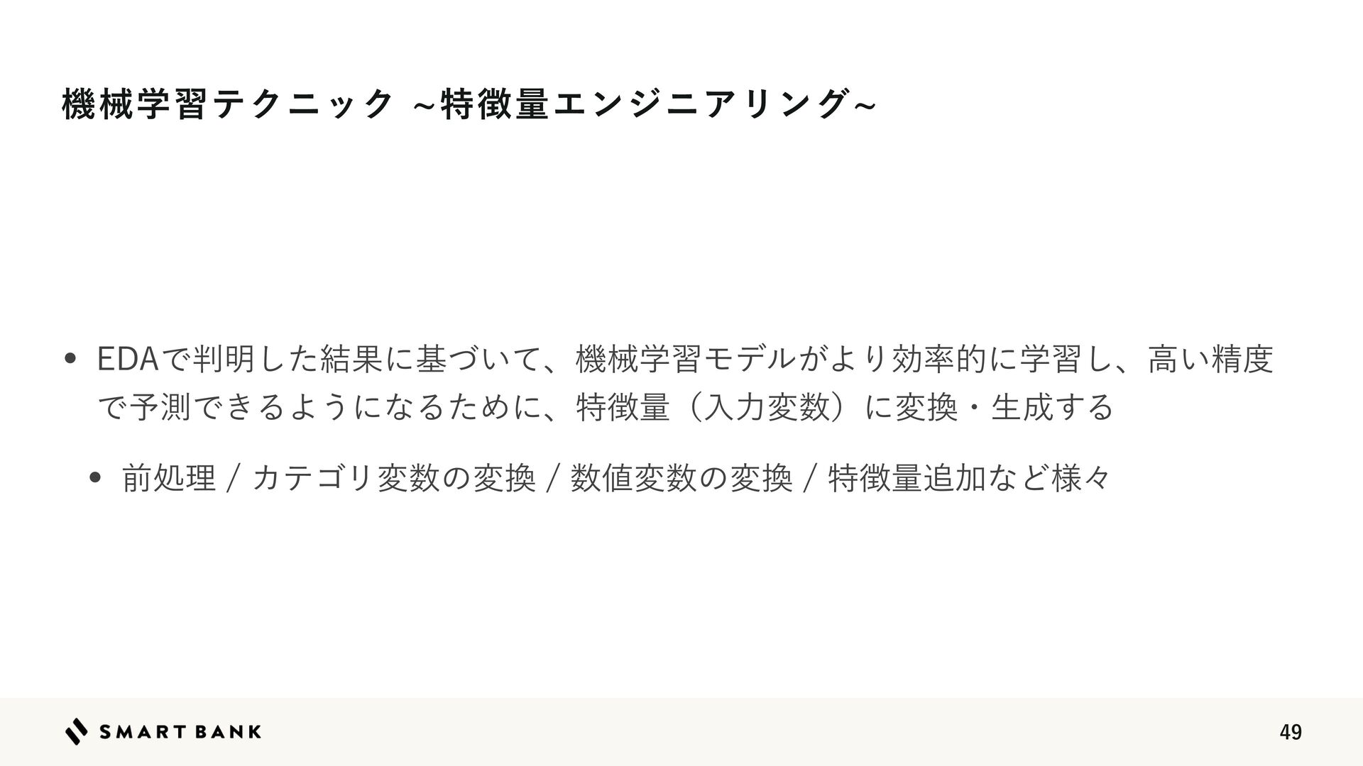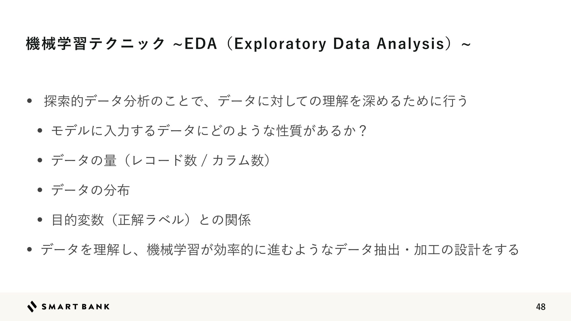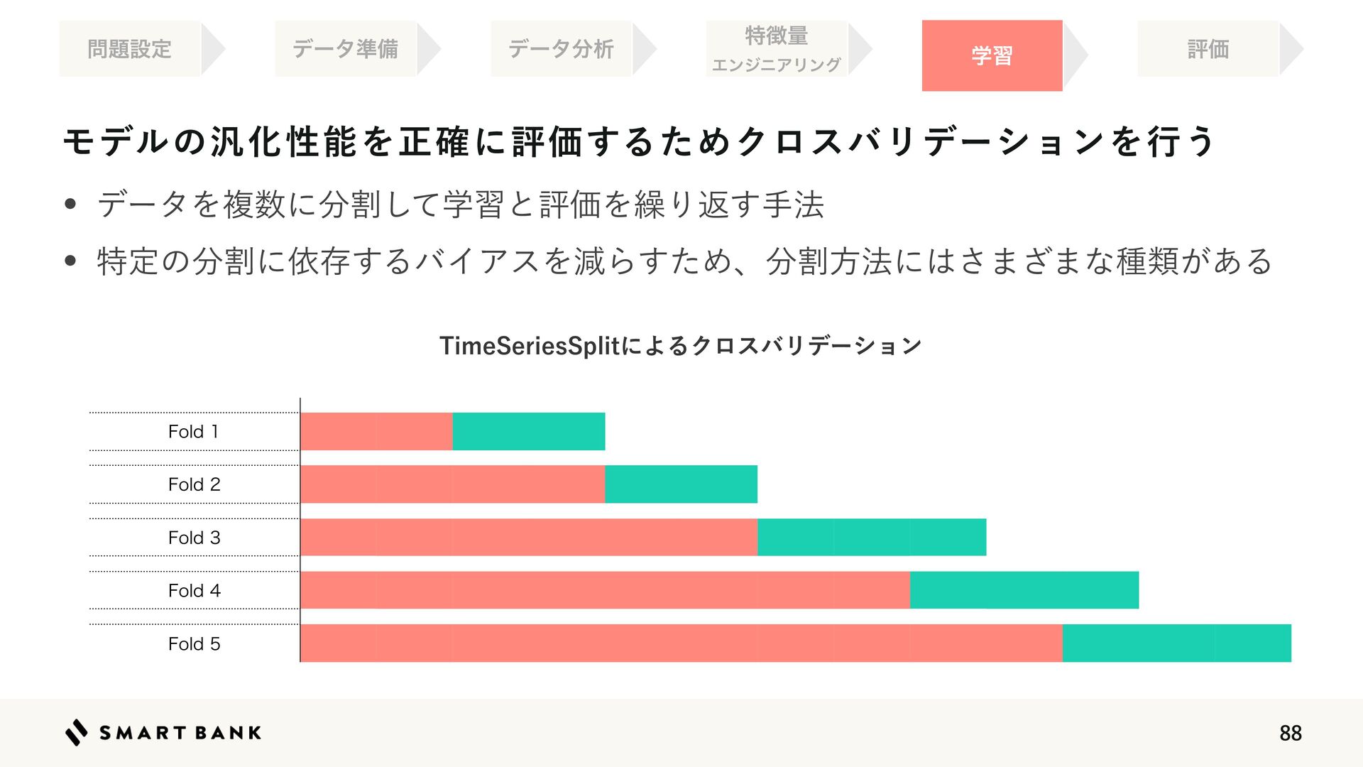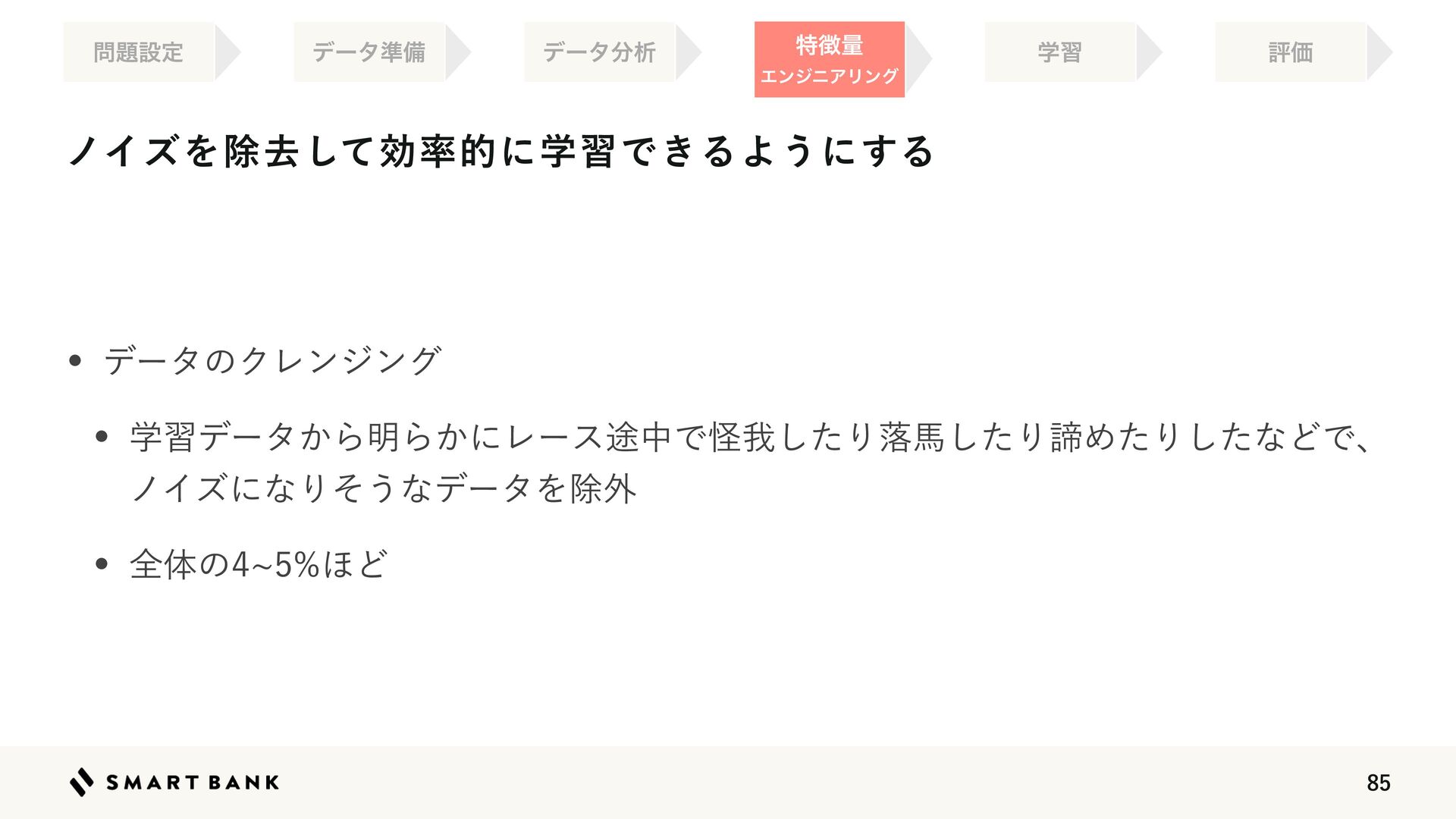 w 👉༧૝తத཰ͷ৴པੑΛߴΊΔ w ஋͕খ͍͞΄Ͳ༧ଌ͕ਖ਼֬Ͱ͋Δ͜ͱΛࣔ͢ ֶश ໰୊ઃఆ ධՁ σʔλ४උ σʔλ෼ੳ ಛ௃ྔ ΤϯδχΞϦϯά