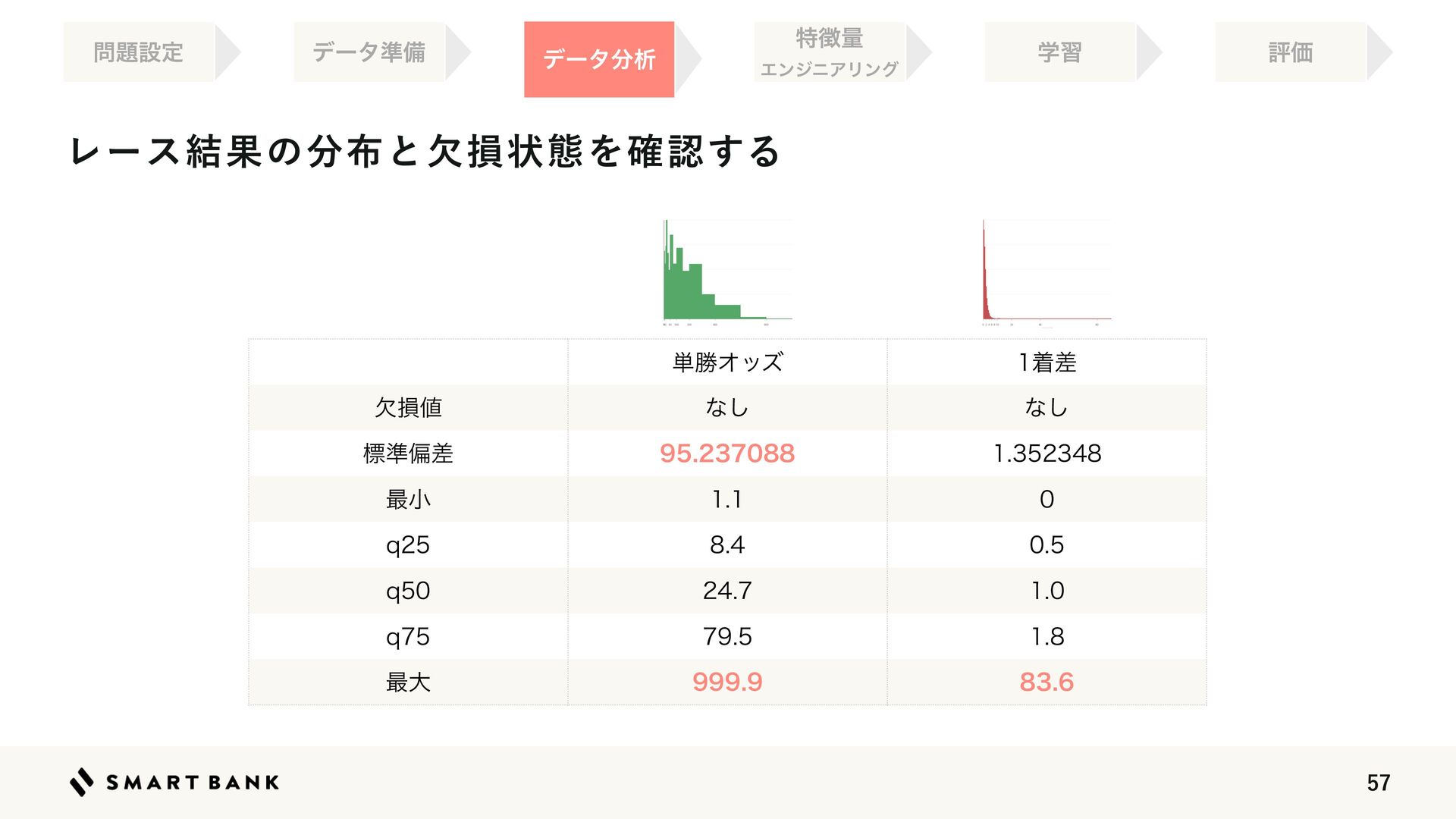 20.  Ϩʔε݁Ռͷ෼෍ͱܽଛঢ়ଶΛ֬ೝ͢Δ ಛ௃ྔ ΤϯδχΞϦϯά σʔλ෼ੳ ໰୊ઃఆ ֶश ධՁ σʔλ४උ ୯উΦοζ