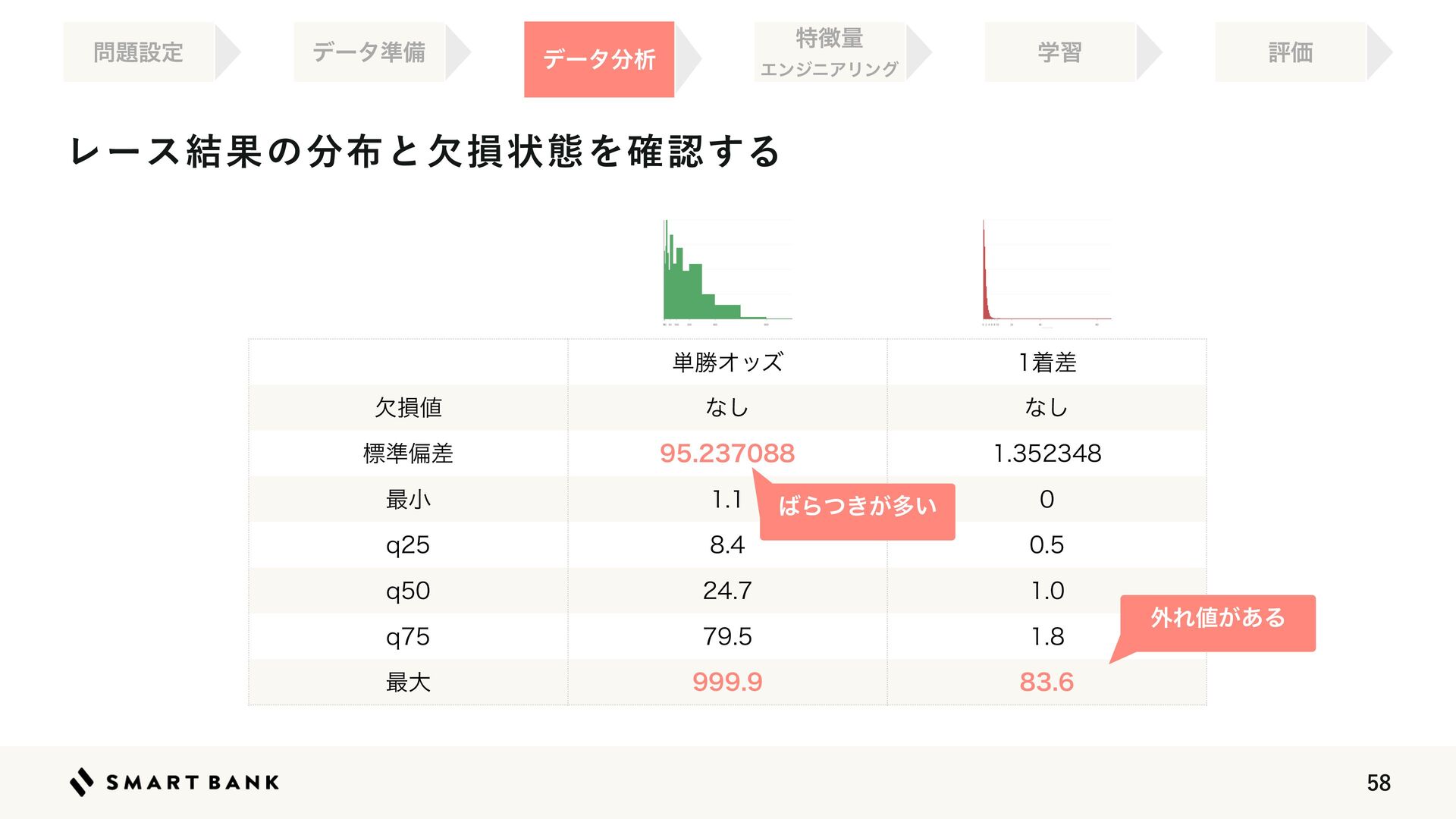 19.  Ϩʔε݁Ռͷ෼෍ͱܽଛঢ়ଶΛ֬ೝ͢Δ ಛ௃ྔ ΤϯδχΞϦϯά σʔλ෼ੳ ໰୊ઃఆ ֶश ධՁ σʔλ४උ ୯উΦοζ