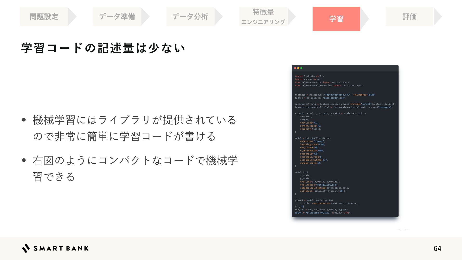 ػցֶशʹ͸ϥΠϒϥϦ͕ఏڙ͞Ε͍ͯΔ ͷͰඇৗʹ؆୯ʹֶशίʔυ͕ॻ͚Δ w ӈਤͷΑ͏ʹίϯύΫτͳίʔυͰػցֶ शͰ͖Δ